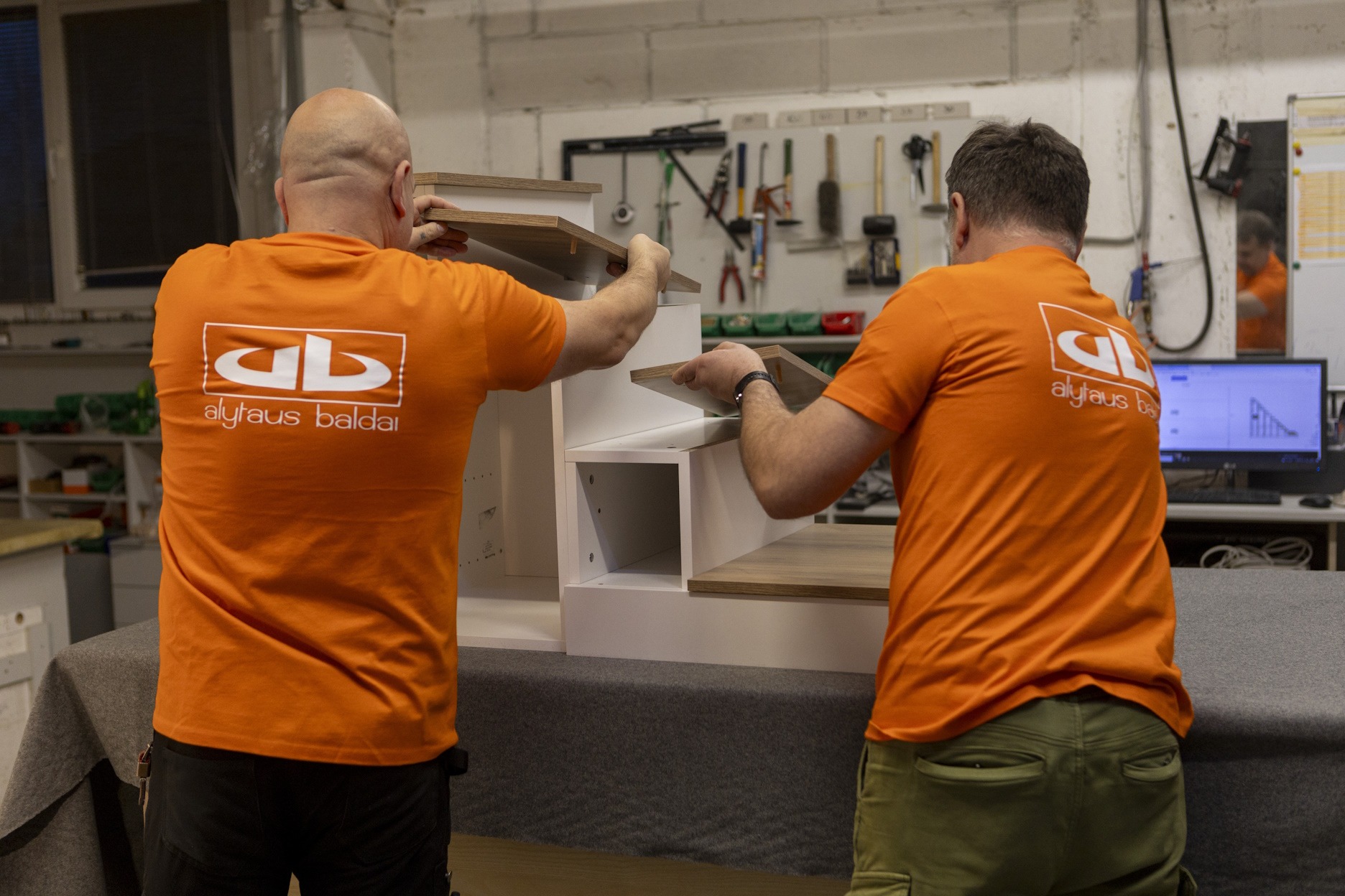 Pagal unikalų Jūsų norimą dizainą pagaminsime baldą. Prieš pristatant baldas gamykloje surenkamas taip dar kartą patikrinama kokybė.