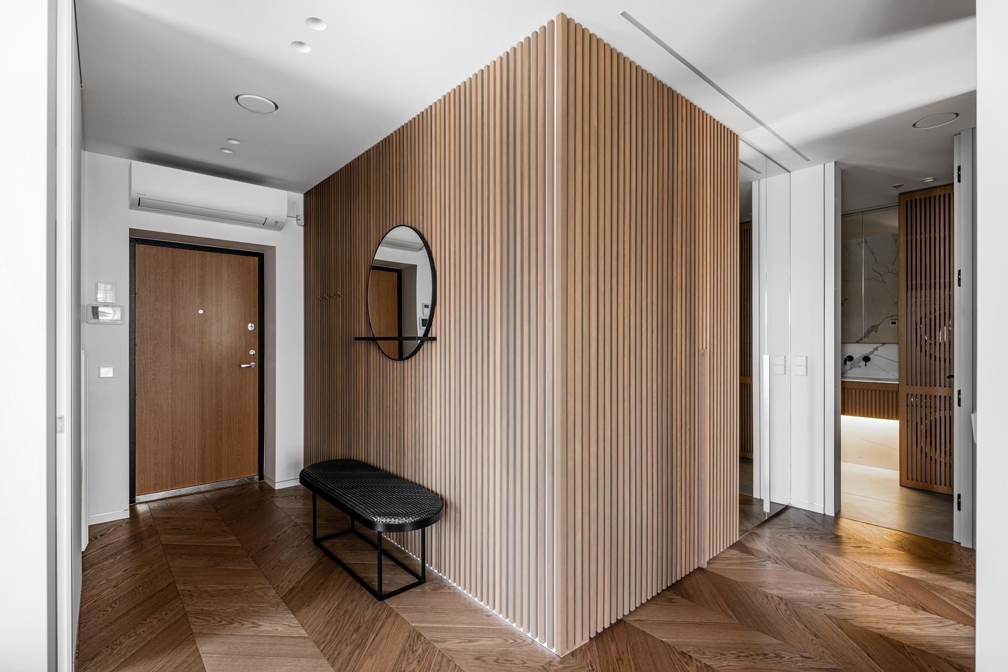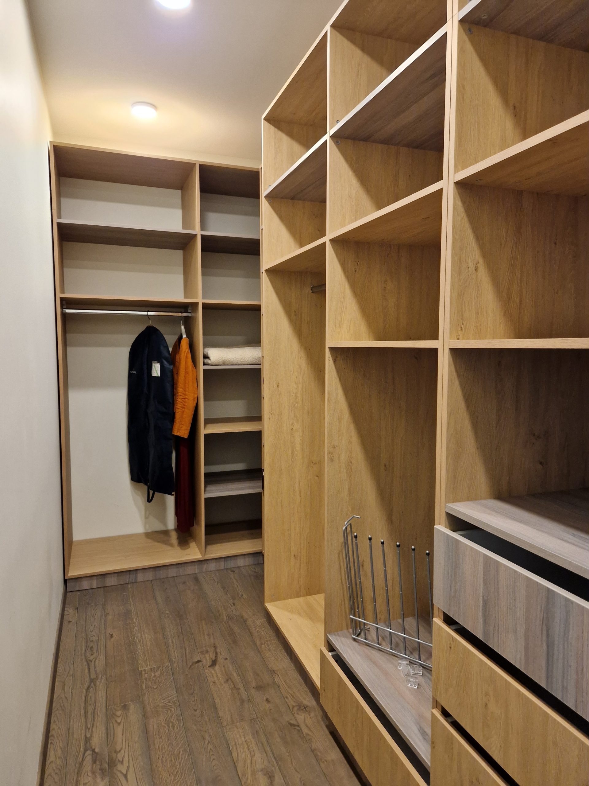 Labai priklauso, kiek madingas esate. Kapsulinės spintos principą taikančiam asmeniui gali užtekti ir 1200–1400 mm ilgio spintos visiems drabužiams laikyti. O jei mada yra svarbu, tuomet verta suplanuoti didelę drabužinę, kur visus drabužius matysite iš karto ir nereikės darinėti durelių.