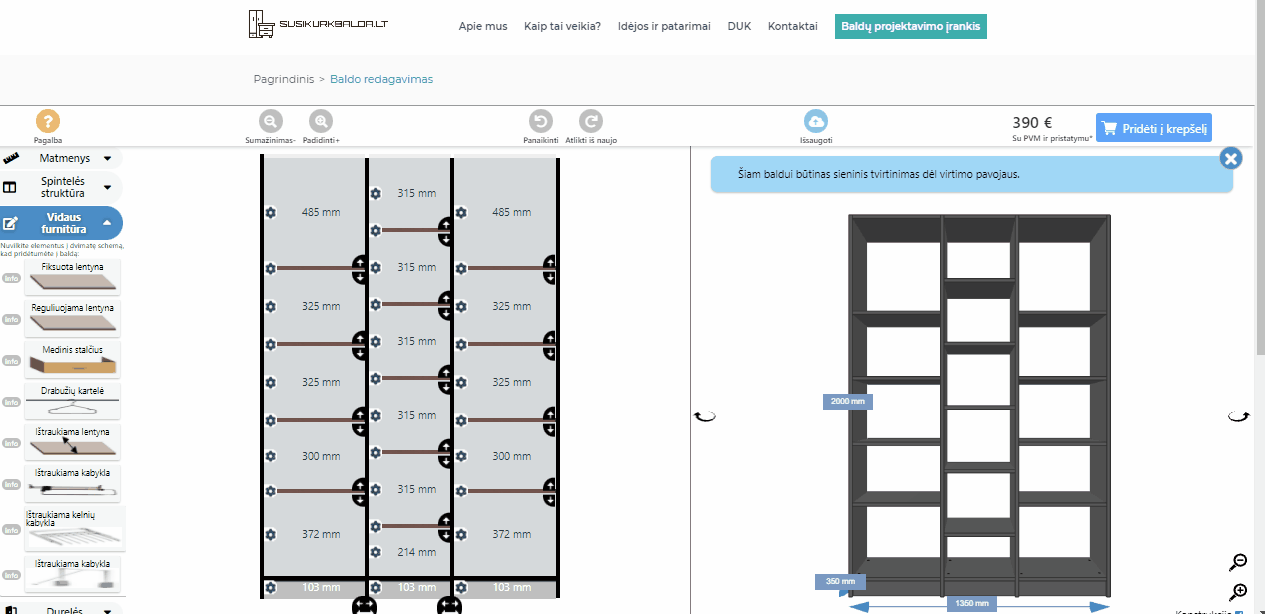Nereikia laukti, kol bus sukurtas Jūsų baldo dizainas. Su mūsų įrankiu – tai paprastas ir smagus procesas. Baldo kainą matysite iškart jį kurdami jį ir atlikdami korekcijas. Tad sutaupysite nemažai laiko.