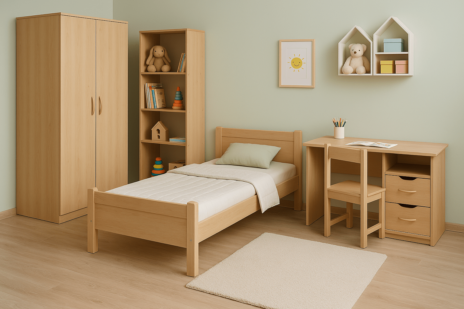 Kuriant vaiko kambarį, reikia nepamiršti jų norų, bet įvertinti, kad vaikų norai dažnai keičiasi. Pasirinkti šviesius, įvairaus amžiaus vaikams tinkančius patogius baldus. Jeigu yra galimybė, lovą planuoti platesnę, darbo stalą ilgesnį, daiktų pasidėjimo vieta turi būti lengvai pasiekiama. Pora nedidelių baldų, tarkim, mažas staliukas ar baldas su stalčiais, suteiktų jaukumo, keičiant jų vietą kambaryje pagal nuotaiką.